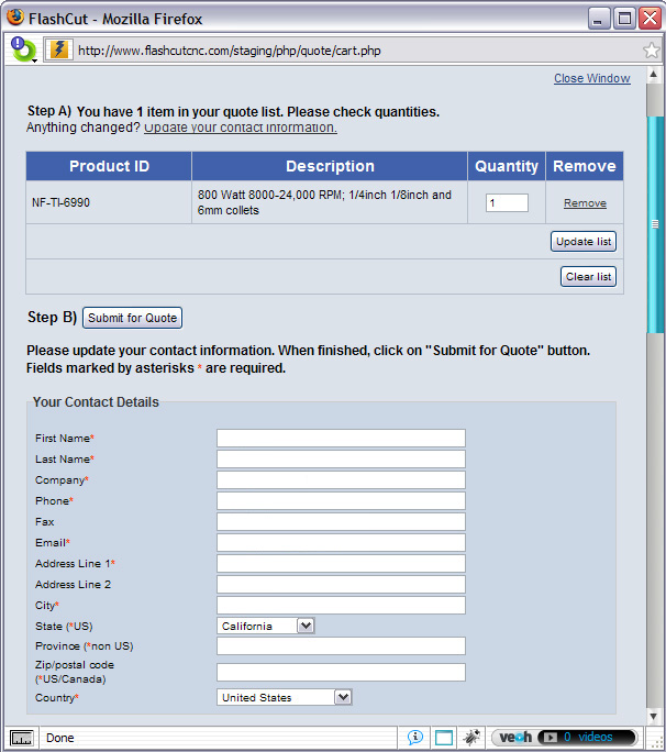 Authored PHP quote request (modified shopping cart) and form functionality.